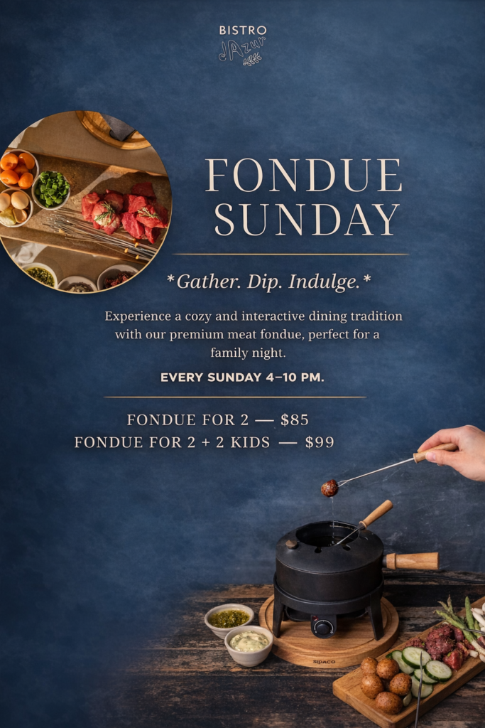 Turn Sunday nights into a warm, memorable experience with our interactive fondue dining.
