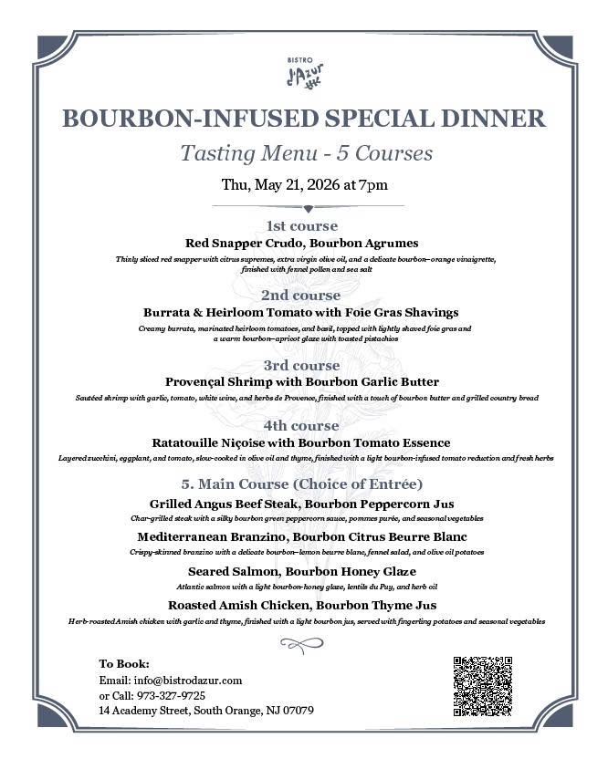 - Location: Bistro d’Azur, 14 Academy Street, South Orange, NJ 07079