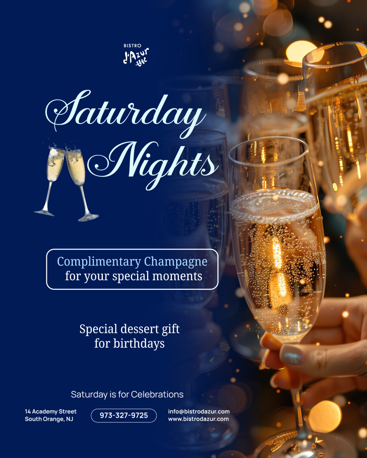 Complimentary champagne for all celebrations