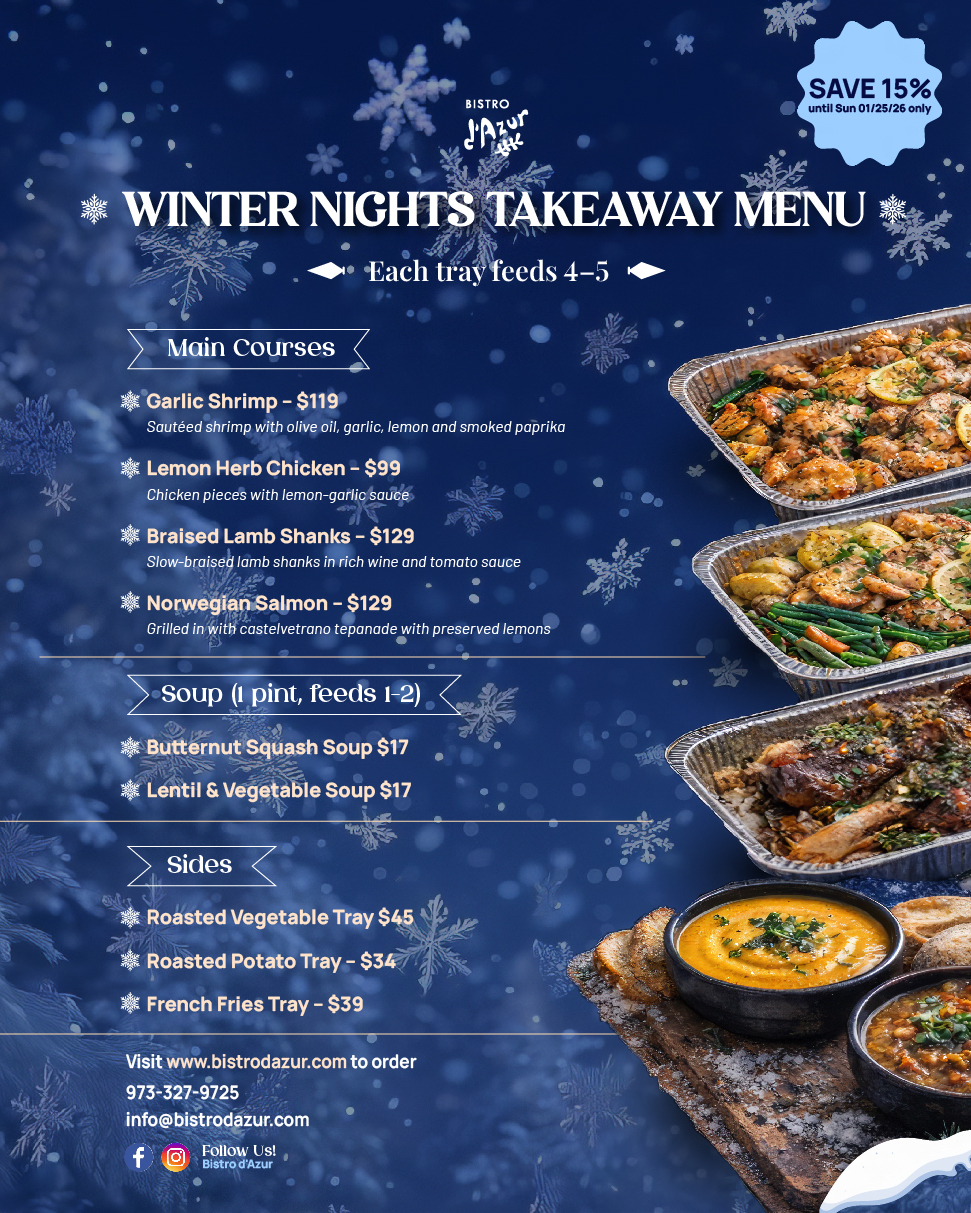 Introducing Bistro d’Azur’s seasonal takeaway menu for the cold winter nights.